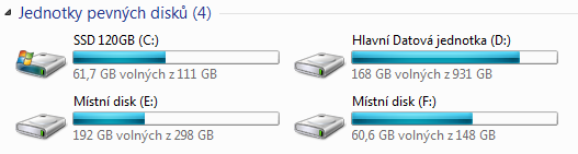 na E: mam stary windows a taky mam dalsi windows na F: ... F jsem prestal pouzivat protoze by brzo kleknul z toho vecnyho READ pri startu PC tak jsem si nainstaloval na HDD od znameho dalsi Windows ( E: ) ten jsem používal do soboty než jsem zapojil nově koupený SSD na ktery jsem taky dal Windows ... takze pri startu PC mi BIOS ukazuje jaký ze 3 Windows7 ma spustit a prave kvuli tomuhle ty Windowsy z ostatnich HDD ( E:, F: ).