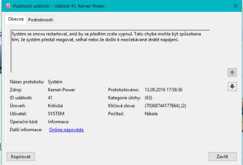 Poradíte někdo? Nyní už mi ani Windows nenaběhne zapnu pc a při spouštění Windows naskočí modra chyb… poslední
