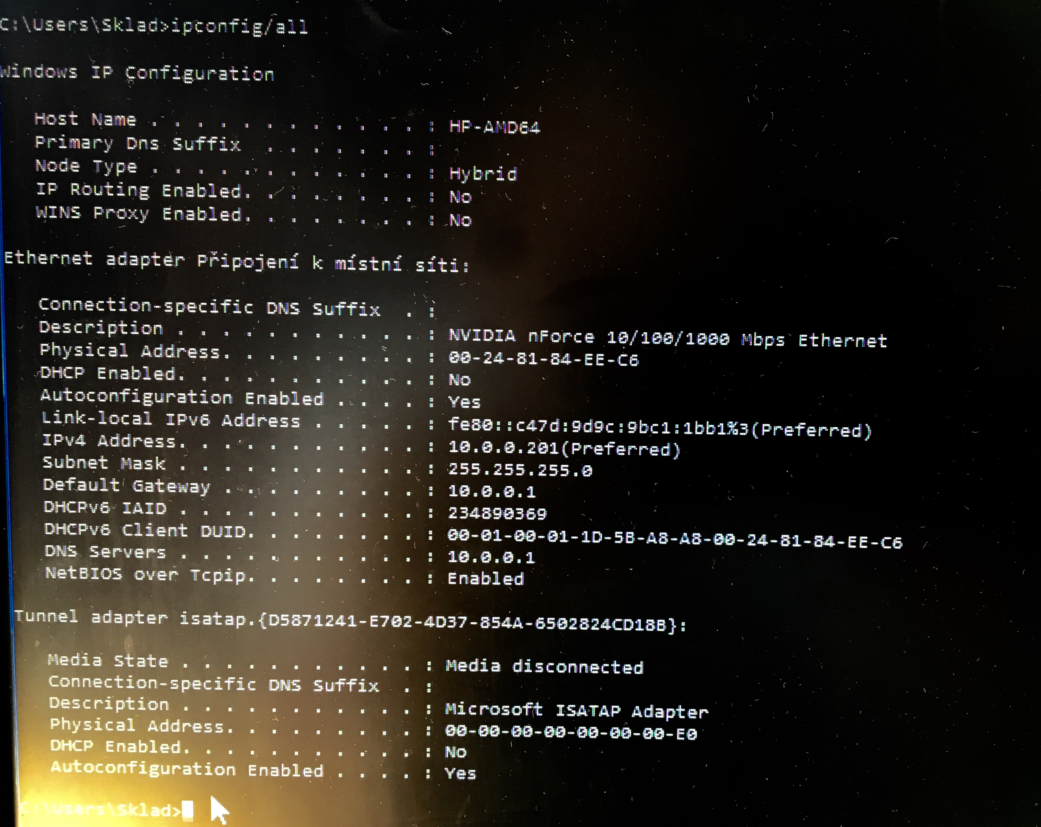 Napadá vás někoho nějaké řešení? Budu rád za každou radu. Přikládám screen z ipconfig all z příkazovýho řádku.