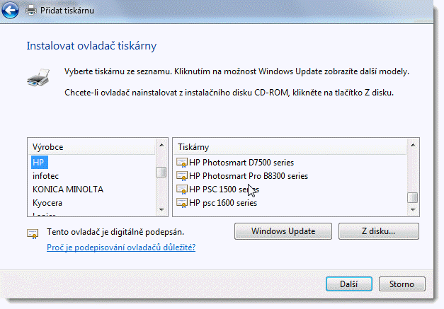HP PSC 1500 series ve třeba v nabídkách Windows 7 po volbě "přidat tiskárnu".