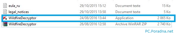 3) V rozbalenem souboru ( v tvé Moje-Slozka) najdes soubor : WildFireDecryptor.exe, klikni na neho pravym tlacitkem mysi a "Spustit jako spravce"