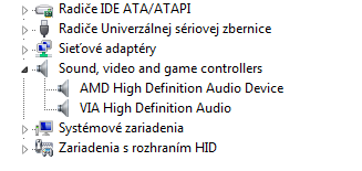 Tu je obrázok zo správcu zariadení môjho PC. Ako vidno, pod zvukovými controlérmi sa u mňa nachádzajú 2 zvukové zariadenia:
