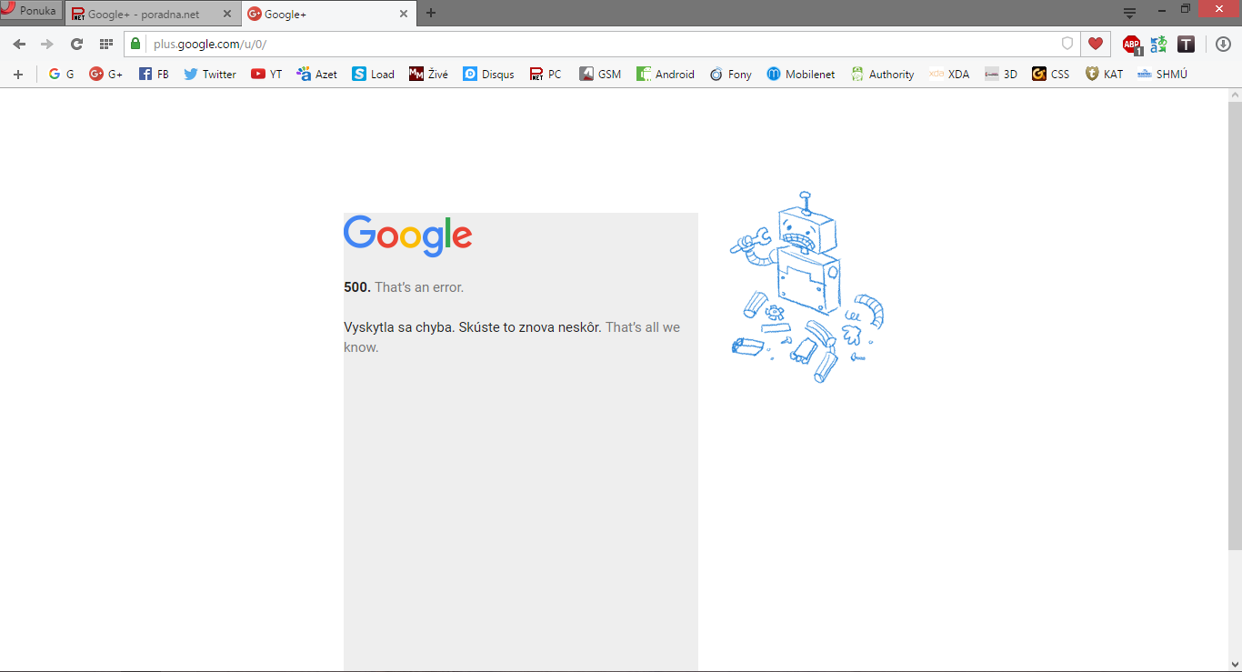 Okej, ruším to. G+ už ide, možno mali problémy na strane Googlu so servermi. Momentálne frčí... Keby… poslední