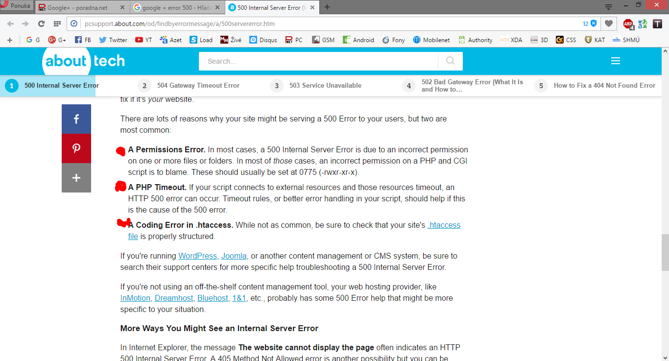To mi ide, akonáhle prepnem do komunít alebo stlačím na domov tak vyskočí error 500.