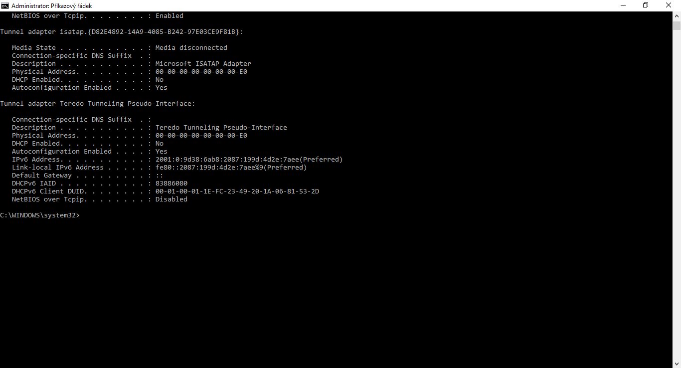 jde o to mít korektně nastavené adresy a dns, ale výpis ipconfig nic podezřelého neukazuje.