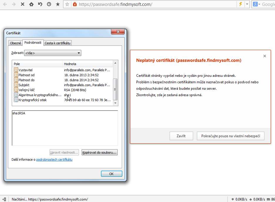 certifikát vystavila sama stránka- to je neprůchozí.:))
