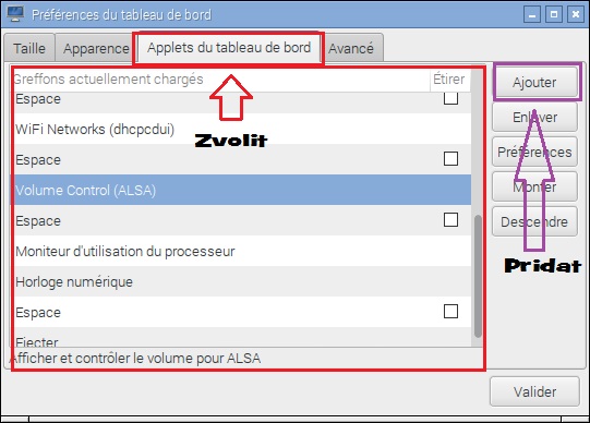 • Pridavani ICON jde i v Jessie bez app, staci "kliknou pravym tlacitkem mysi" na horni "pravou listu" => Pridat "APPlets", tam kde jsou i IKONY typu "WIFI", "ZVUK"