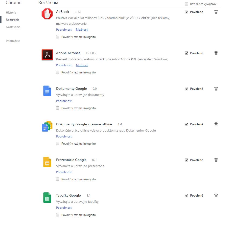 Dnes opäť nanovo nainštalovaný Google Chrome: Verzia 53.0.2785.101 m (64-bit)
