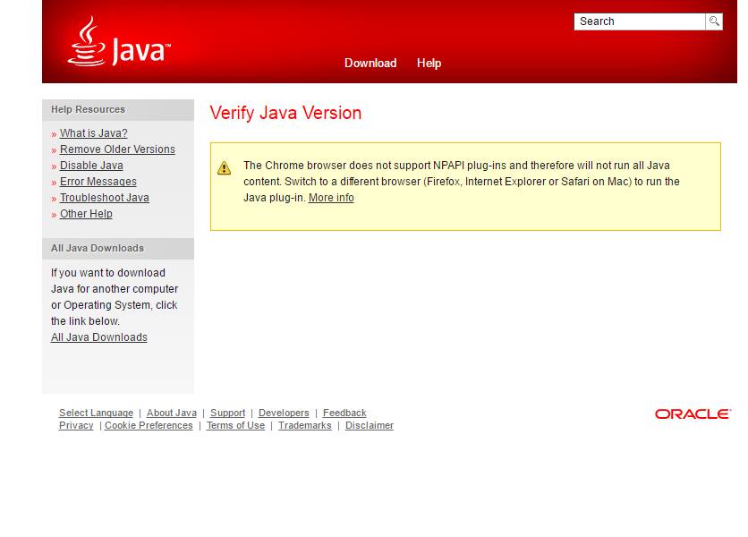 Doplnujuce info: java script nieje mozne nainstalovat : ,,The Chrome browser does not support NPAPI plug-ins and therefore will not run all Java content. Switch to a different browser (Firefox, Internet Explorer or Safari on Mac) to run the Java plug-in. More info,,.[/i][/i]