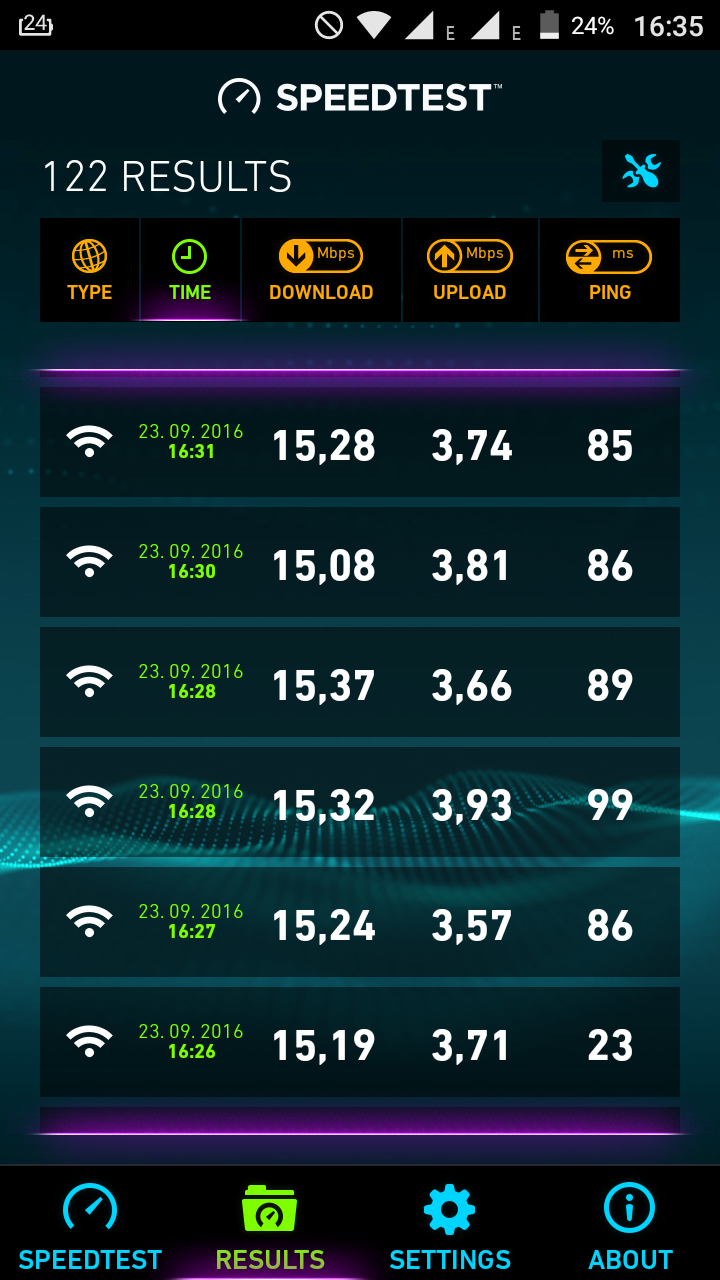 Testuji to přes SPEEDTEST a rychlost zatím dobrá, ale ping nad 80