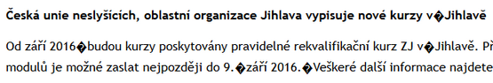 Změnil jsem tedy kódování v hlavičce i formát textu na UTF8, který jsem v administraci RS vložil znovu. Všechno se udělalo, jen ty pevné mezery ne.