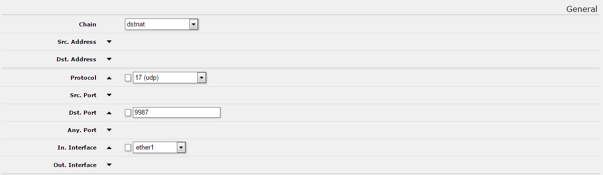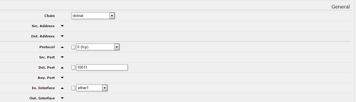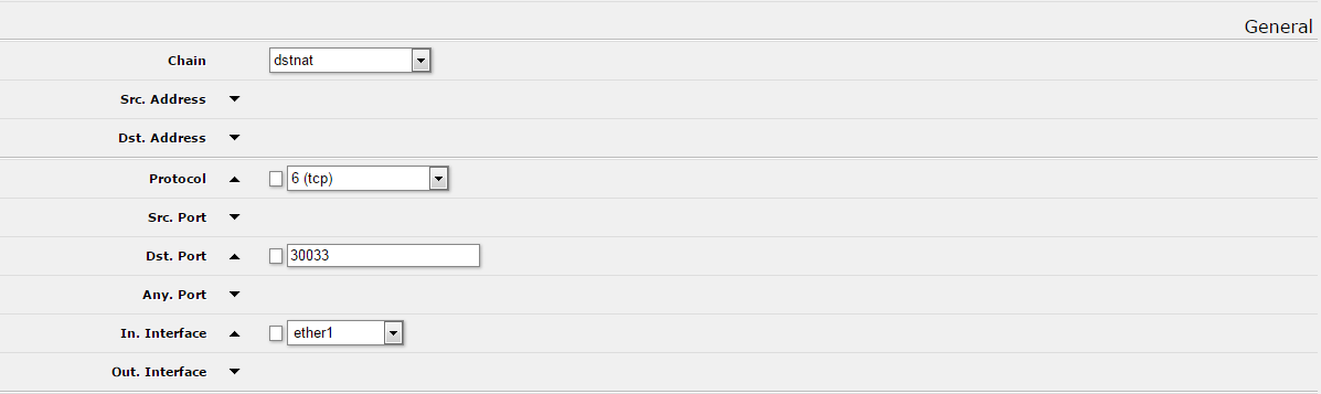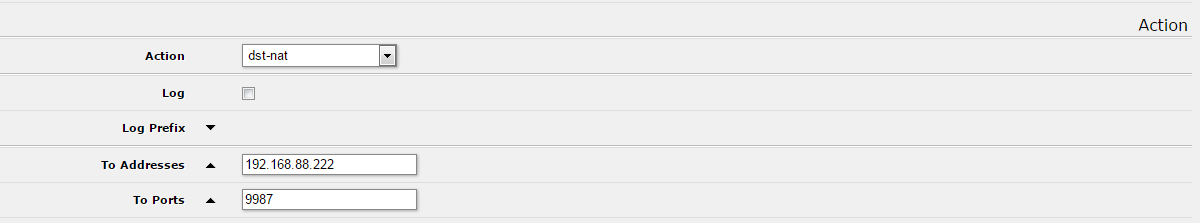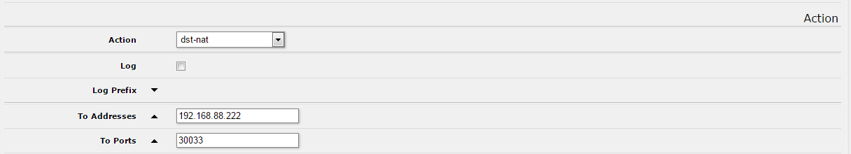 Možno sa mýlim, ale pokiaľ chceš pristupovať na interný server z externých sietí, je potrebné vyplniť dst-adress... Sem sa dáva IP adresa WAN rozhrania Mikrotiku = gateway - verejná adresa.