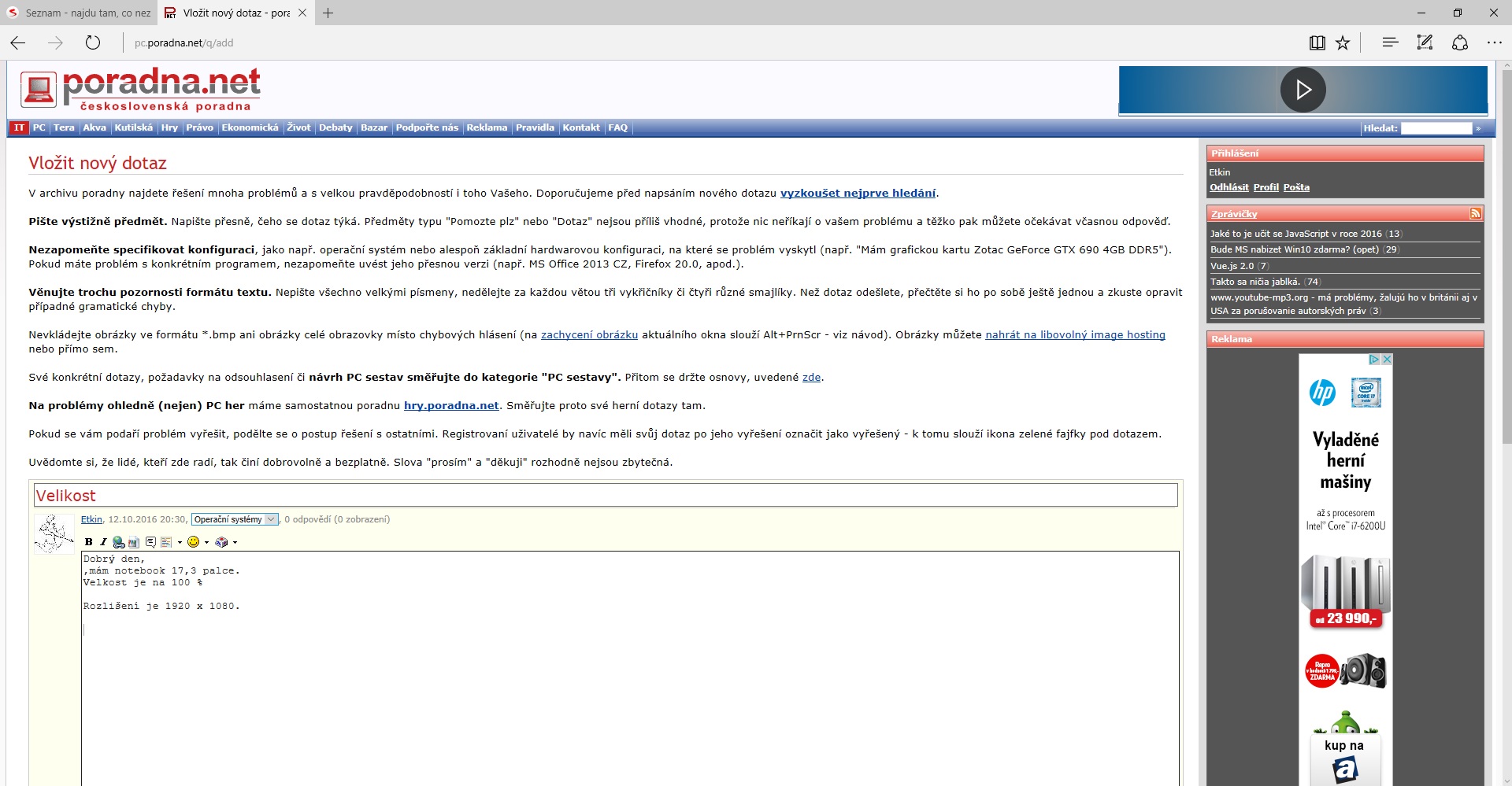 Mám notebook 17,3 palců