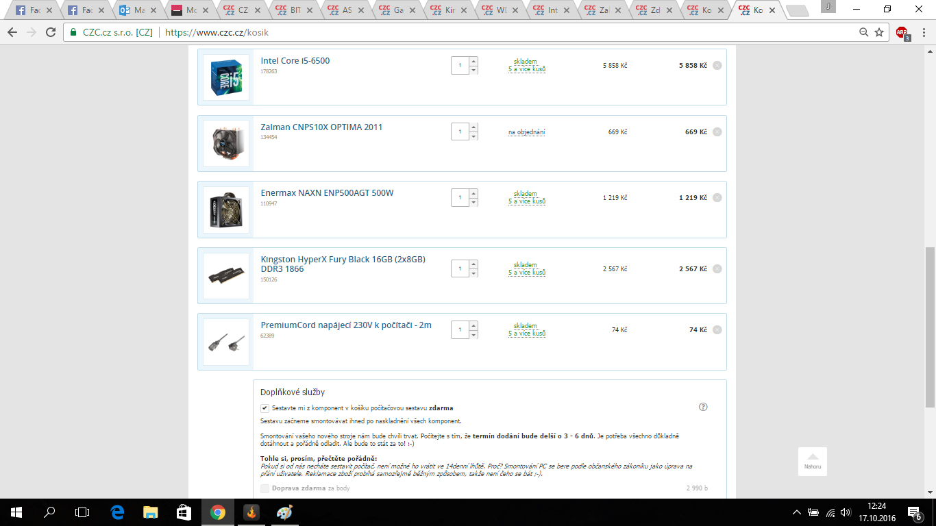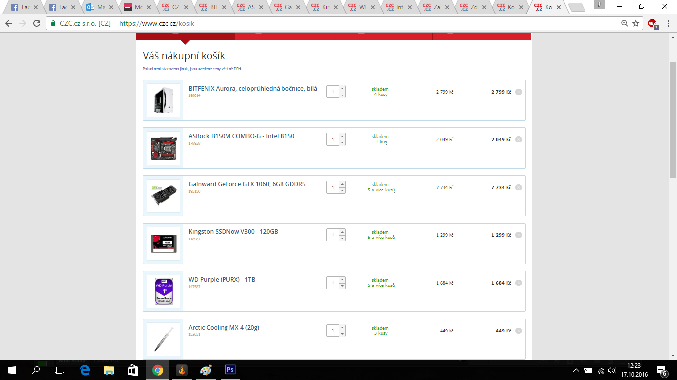 chtěl bych si koupit "pořádnou" herní mašinu, ale nechce se mi platit peníze navíc hotový pc, tak jsem si ho tak nějak složil u czc a potřeboval bych aby mi někdo na to juknul a dyštak prosím navrhl třeba levnější díl, který by fungoval tak nějak stejně, nebo opravil chyby, jestli tam nějaké mám. Bohužel nevím jak odkázat na můj košík, tak sestava je dole v obrázcích.