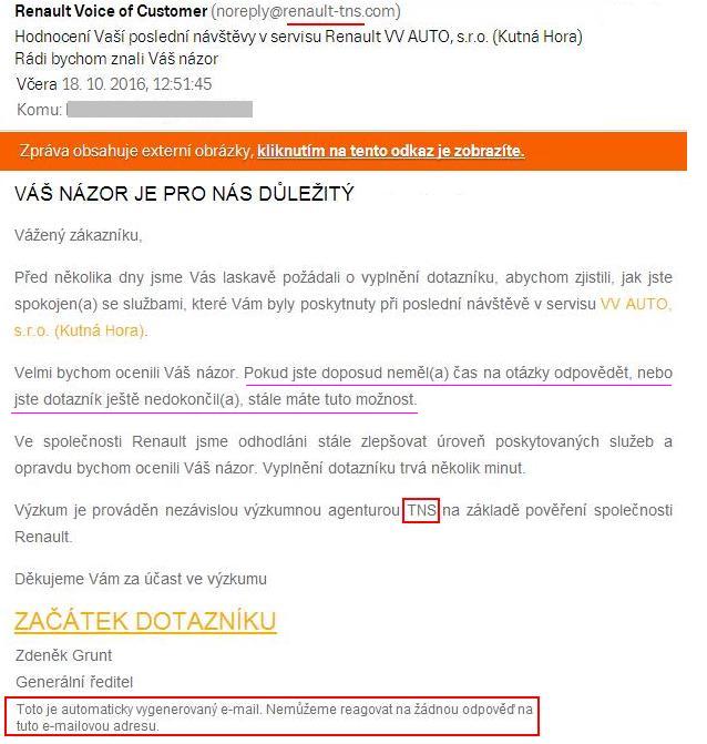 IMHO takovéhle emajly dělají firmě RENAULT akorát ostudu. Ať už si je firma Renault skutečně na nějaký průzkum najala nebo si její název "půjčili", aby šířili viry.