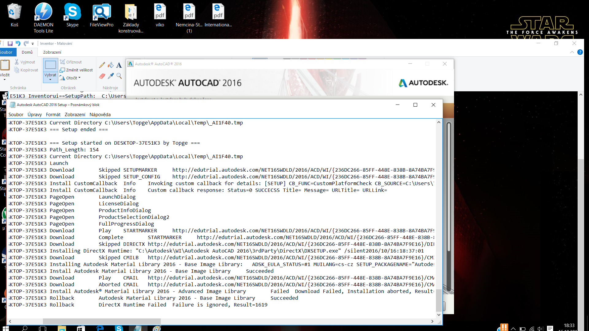 Při instalaci jakéhokoliv ročníku autoCADU z oficiálních stránek autodesku (2013-2017 tuším), objeví se neustále stejná chyba
