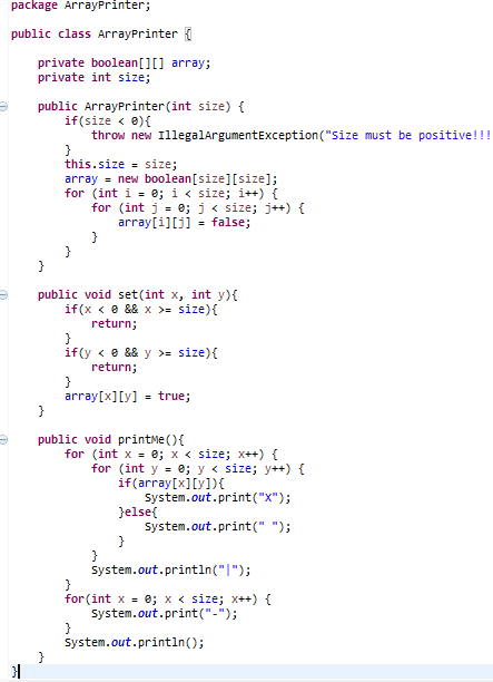 Tak tenhle "program" nedělá ani tu diagonálu. Program je v uvozovkách, protože to není kompletní program ale jenom jedna třída. Ve zbytku programu bude vytvoření instance této třídy a pak nastavení polí pomocí metody set(x,y).