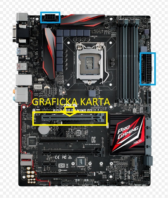 3) Zapojena Graficka karta zapojena v PCIe 1