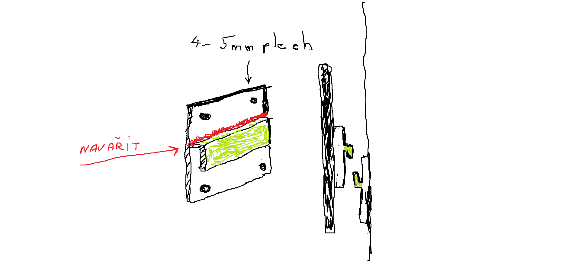 Bude tam plná váha na dvou šroubcích,pro srandu tam nedělaj úchyt na 4x plech kde se to zpevní,jinak když píše že je strojař tak snad není problém to udělat nějak pořádně,tohle je děs běs i na amatéřinu.....