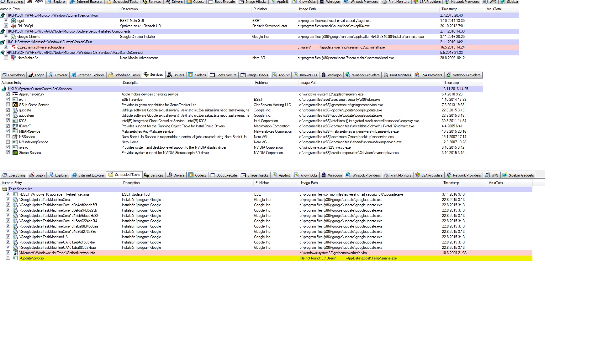 log z ms autoruns byl neúplný, log z jiných nástrojů žádný.