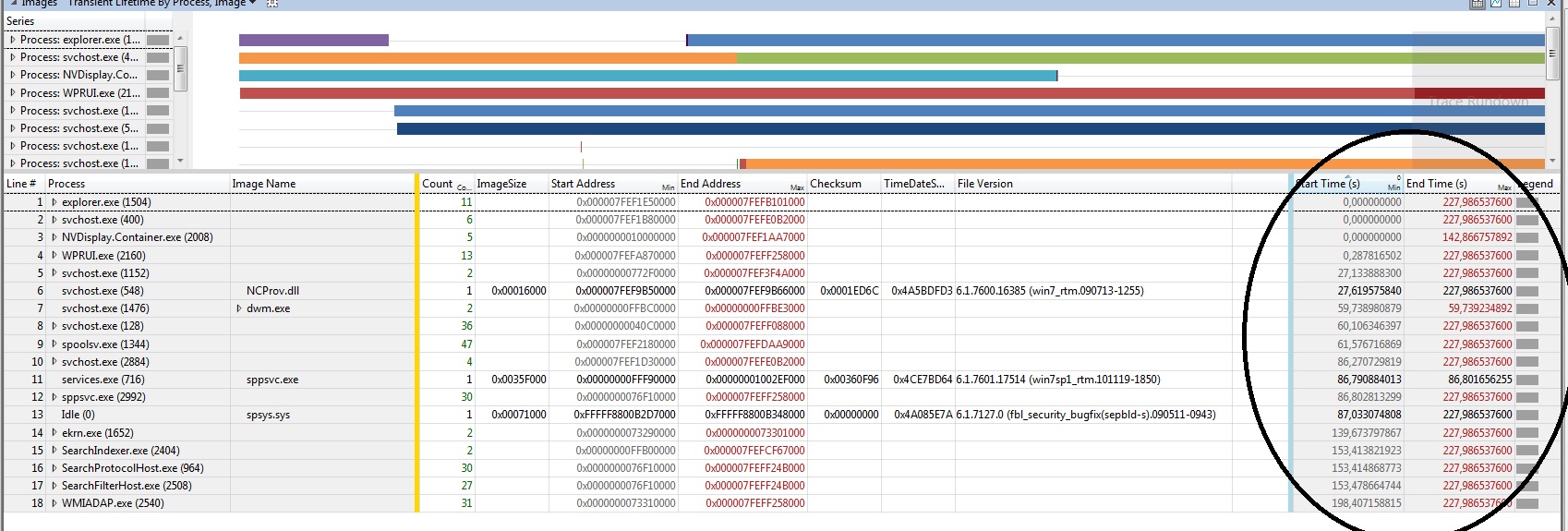 Nevím, asi bych u toho musel sedět, abych z toho něco zjistil, tak dokonale ten program zase neznám. Pátrej po grafu, jak jsem posílal na tom odkazovaném obrázku, kde je vidět, kdy se proces začne spouštět a jak dlouho to spuštění trvalo.