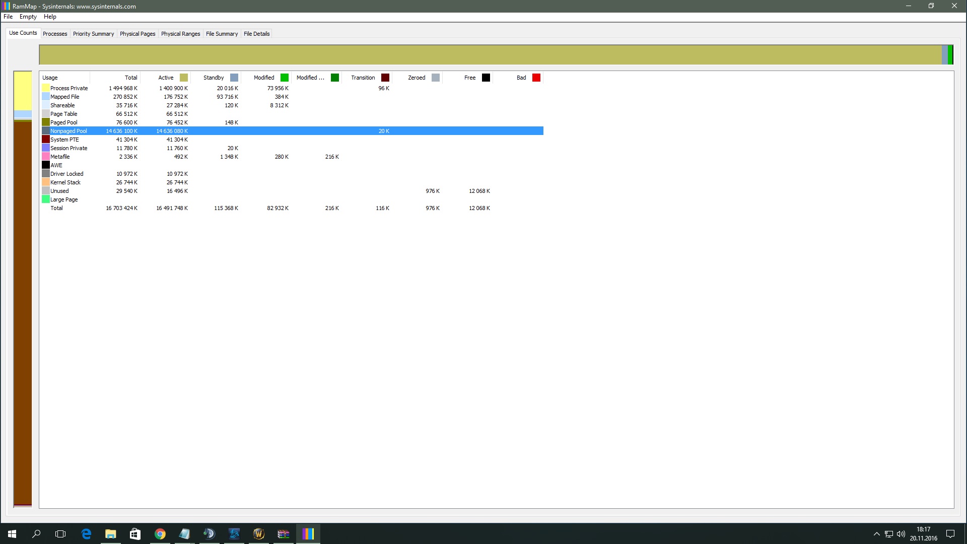 jinak myslím, že ani v processes, ani v file sumary/details se neukazuje, co konkrétně tak obrovskou ram zabírá.