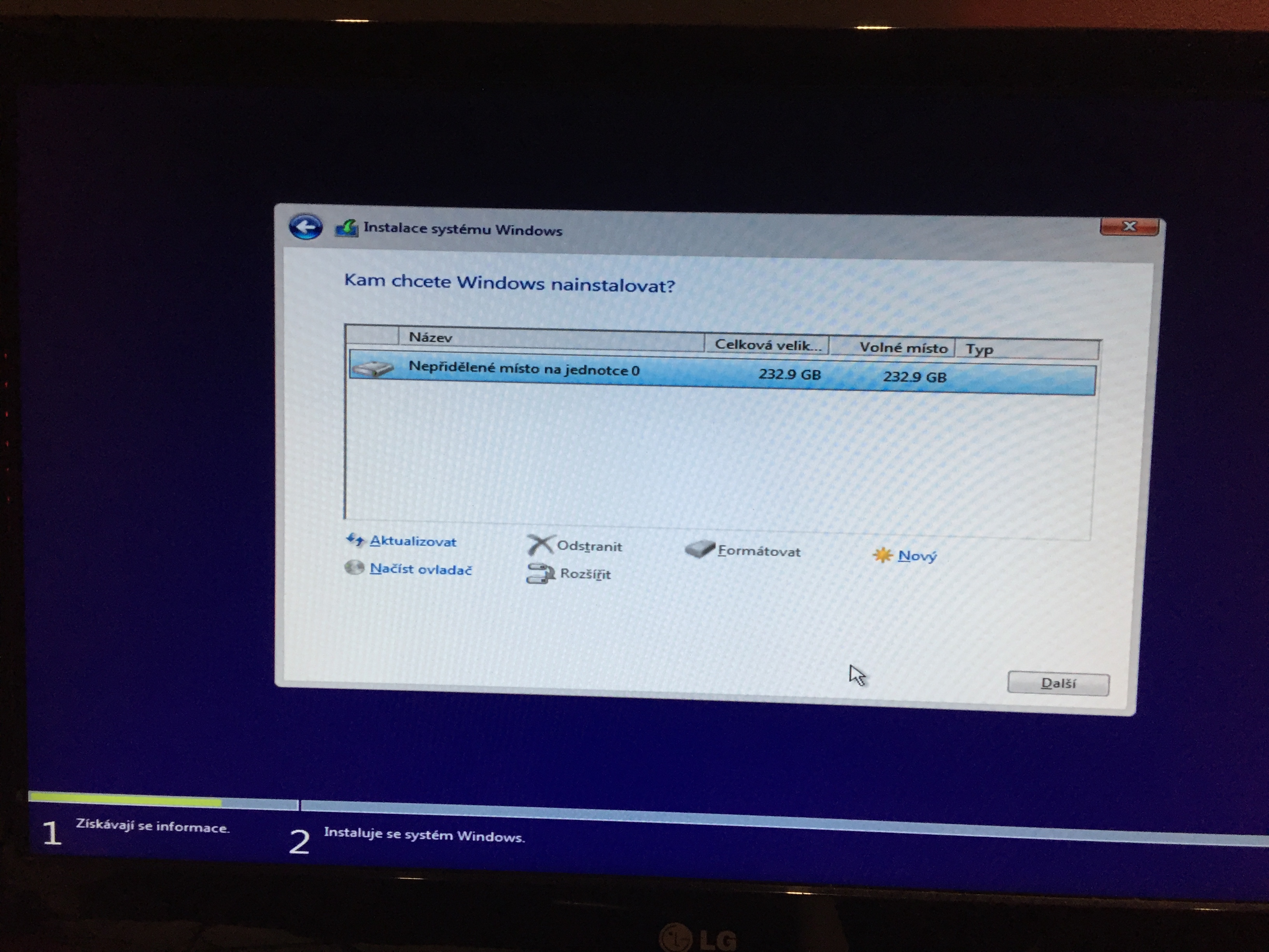 Nikde jsem nic neodpojil, instaluju to z bootovaciho Flash disku