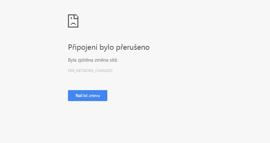 Nyní problém vypadá tak, že při zadání jakékoliv adresy se objeví že bylo připojení přerušeno (viz.… nový