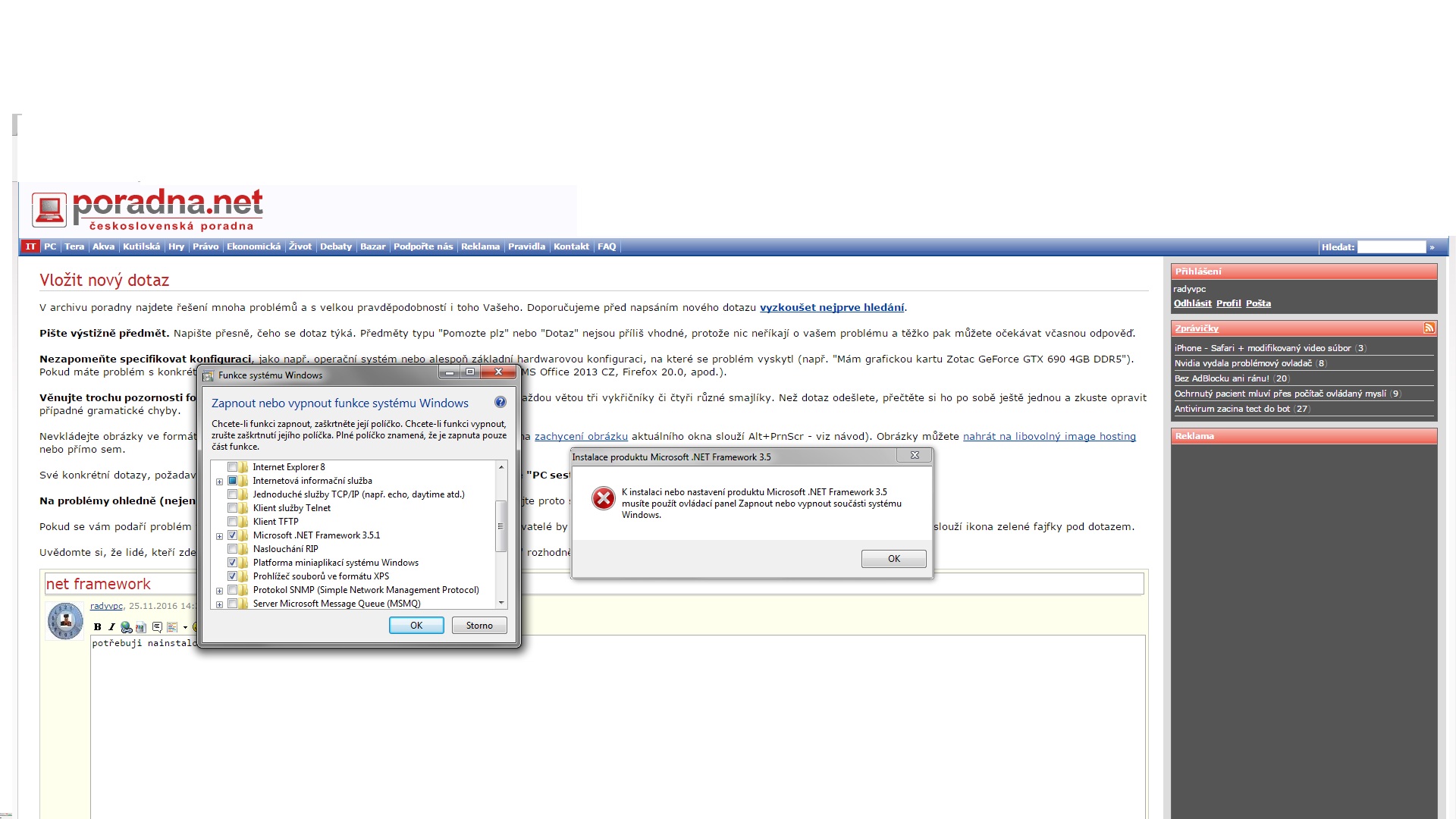 nejde mi nainstalovat net framework 3.5