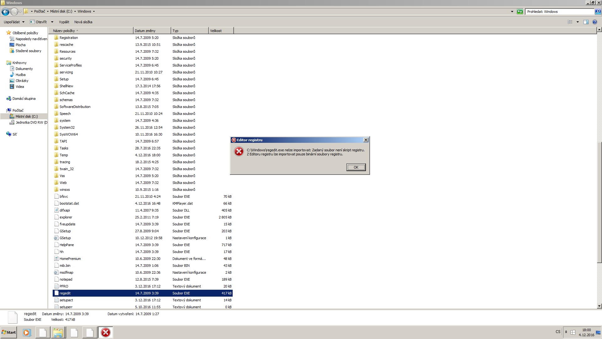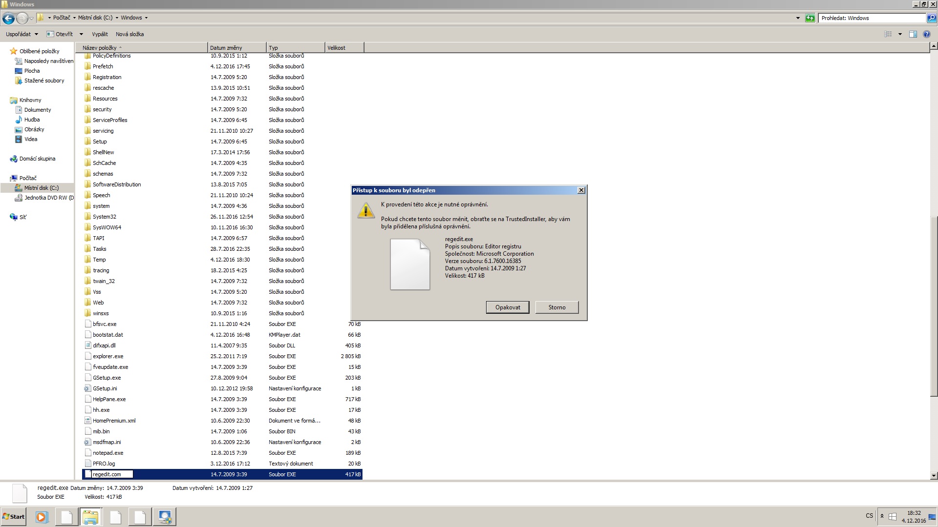mam win7 a pise me to te aplikace regedit.exe nebyla nalezena