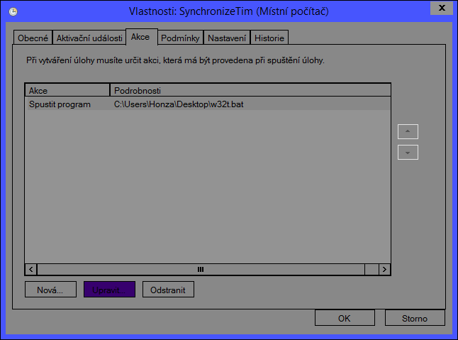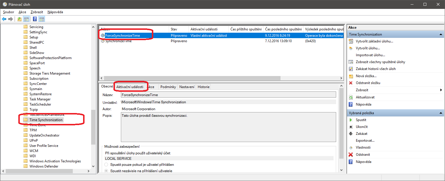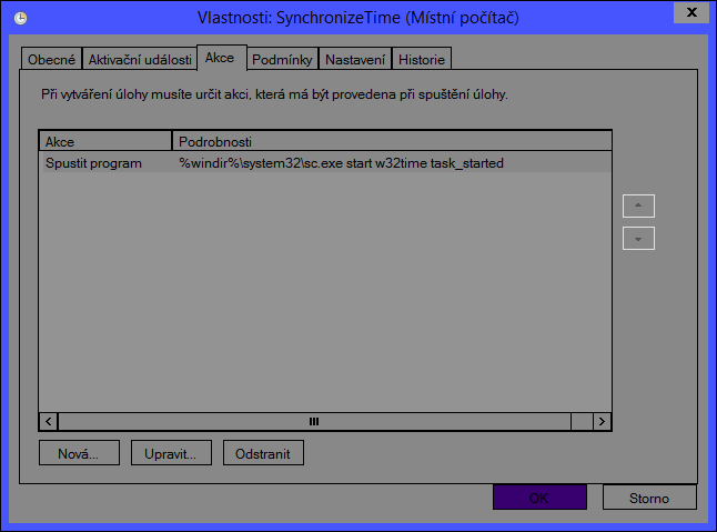 V poli akce mám toto: %windir%\system32\sc.exe start w32time task_started