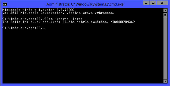 Nemáš spuštěnou službu Windows Time.