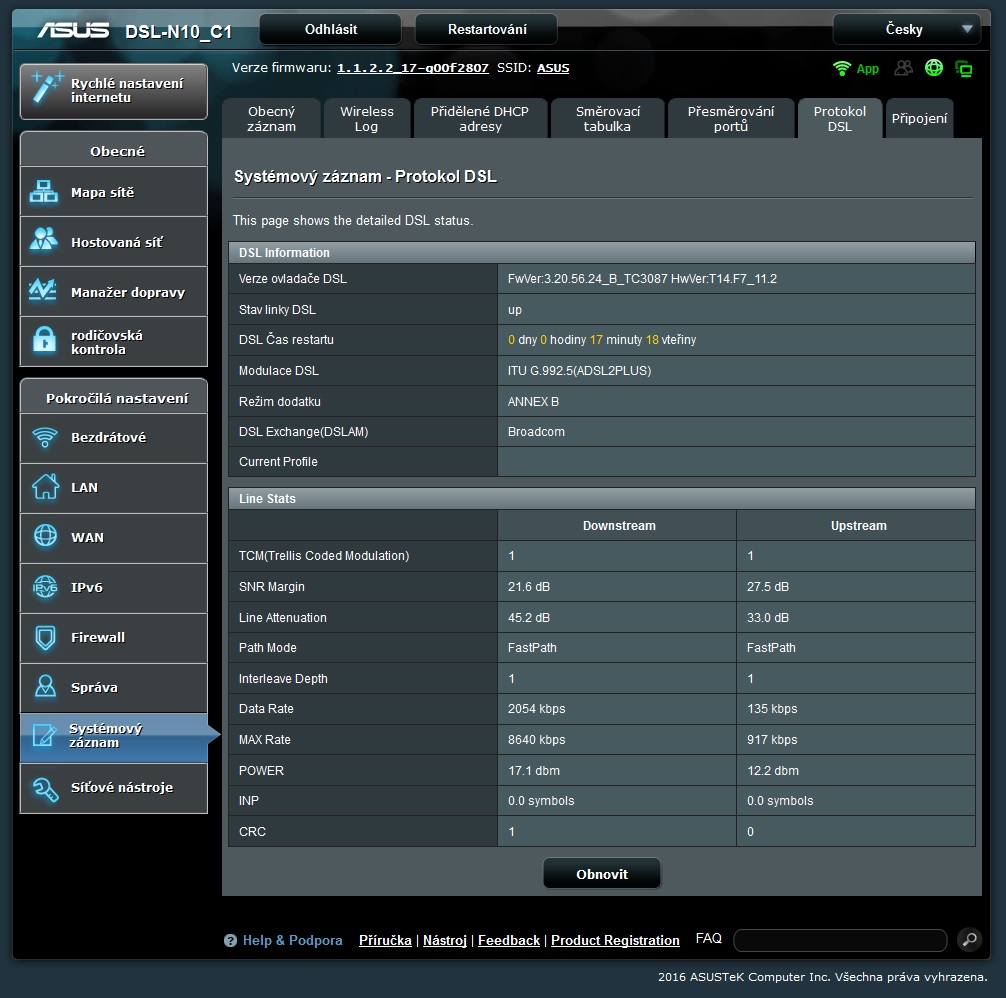 Osobně asus nemusím, ale netvrdím, že to je tím, že by byl obecně nevhodný. Máš velmi nízkou rychlost, pravděpodobně jsi daleko od ústředny, a tam už hraje roli kdejaká kravinka.