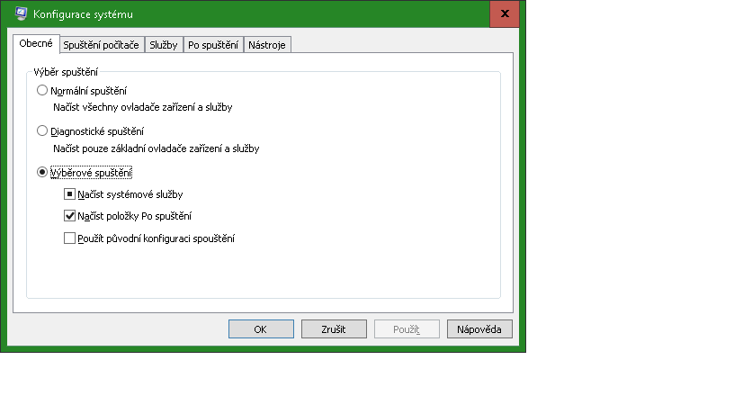 V msconfig mám toto:
