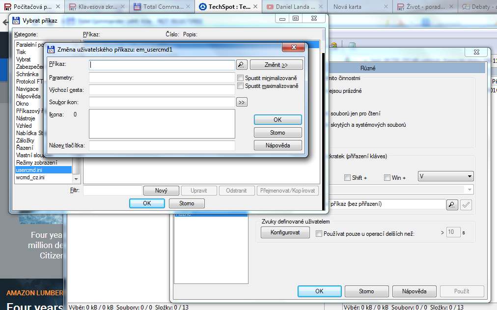 Jenze nevim jak, kdyz dam v moznostech vlastni prikaz pro klavesovou zkratku, tak tam muzu jen vybrat z uz existujicich prikazu, ale nemuzu tam zapsat vlastni.