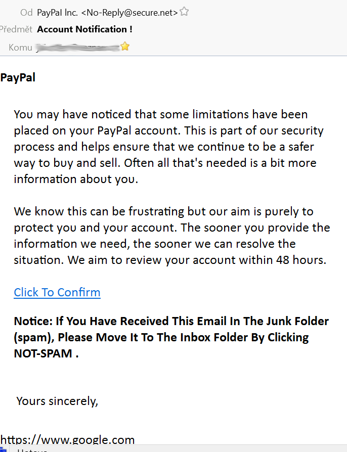 Je to pravý email od PayPalu nebo falešný?
