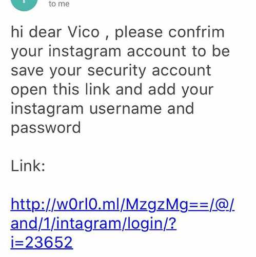 okrem toho,neoslovujú hi dear XY,ale hi XY a nick vyznačujú hrubo a pokial oznámia niečo podozrivé na konkrétnom účte,vyzvú na kontaktovanie podpory,neposielajú nejaké klikacie linky,ktoré miesto slova instagram majú intagram a podobné skomoleniny.....rovnako postupuje tweeter a podobné služby......