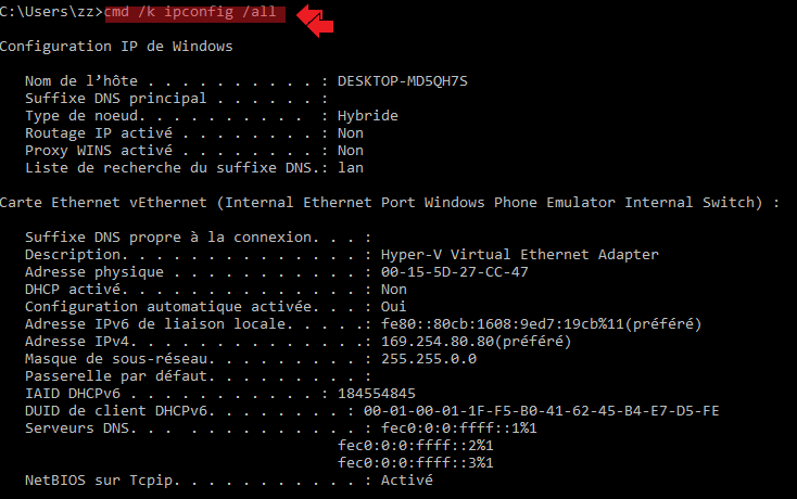 cmd /k ipconfig /all