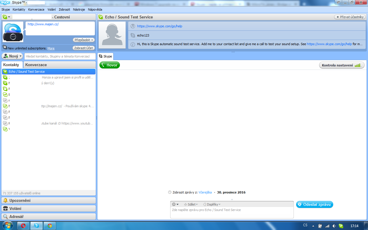 Pres web se normalne prihlasit na muj Skype ucet da, ale tam zase nefunguje volani