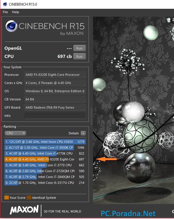 *Dokladam Scrren k porovnani, coz jde skusit doma, staci jen stahnou CineBench a spustit test.. Cine Bench R15 nastahnuti : www.maxon.net