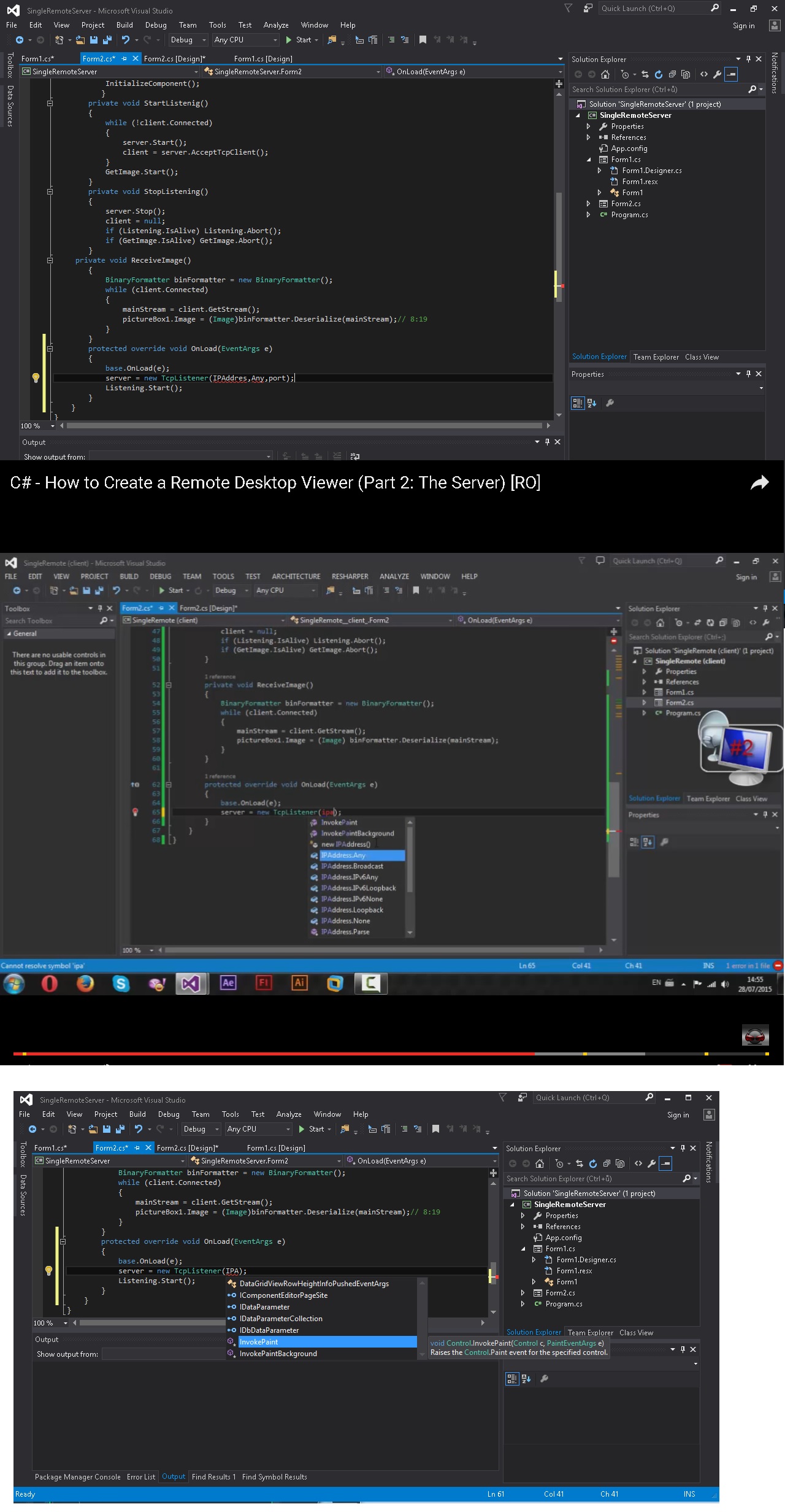 Krok za krokem asi ne. Proč tam nemáš using System.Net.Sockets; Jako je v tom videu?