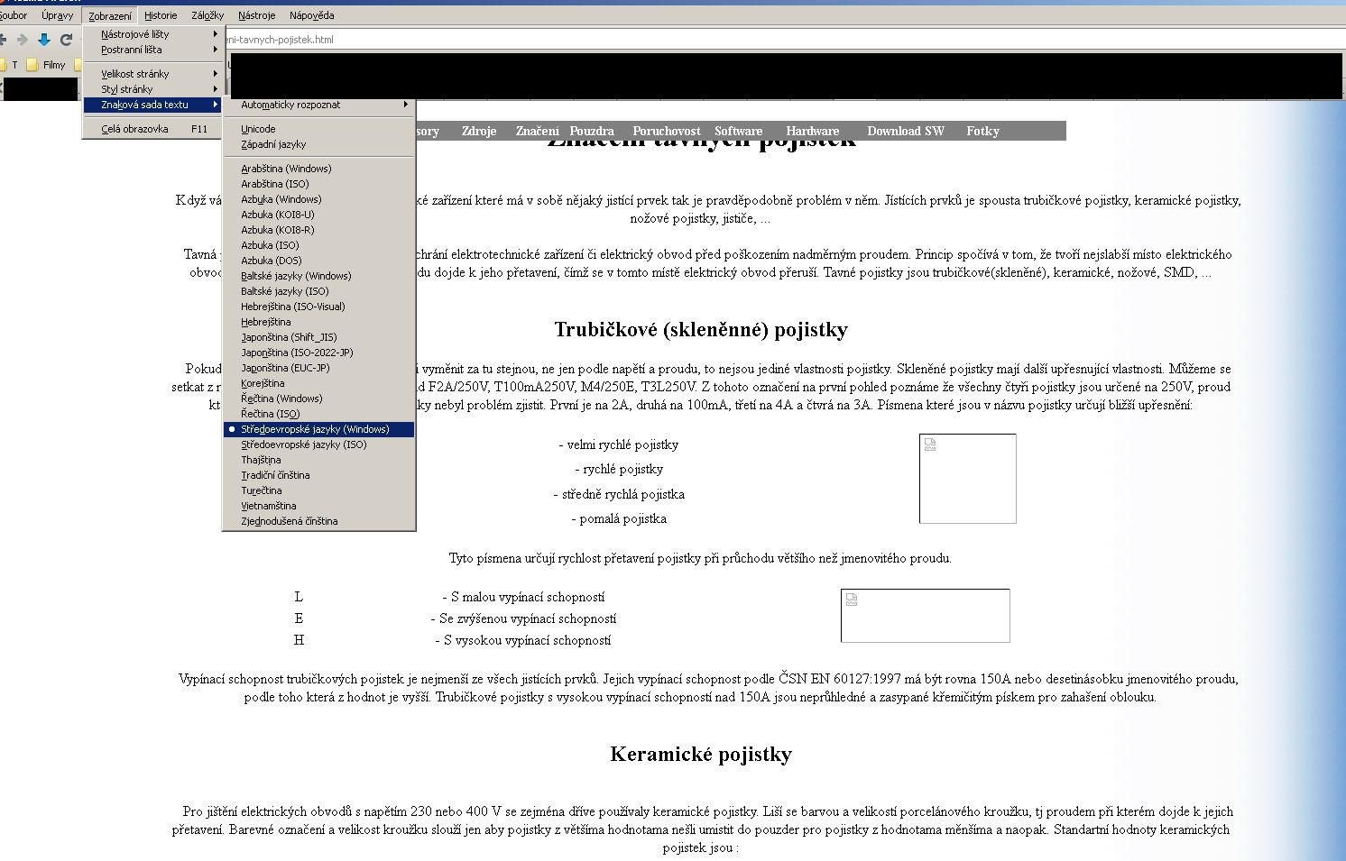 mám dotaz ohledně jedné stránky. Hledal jsem něco o pojistkách, tavných a Google mě našel něco, co mě zaujalo. Ve výsledku hledání byla patrná čeština, diakritika, vše v pořádku. Ale po otevření stránky jsou písmena na místo českými znaky zobrazena s otazníkem.