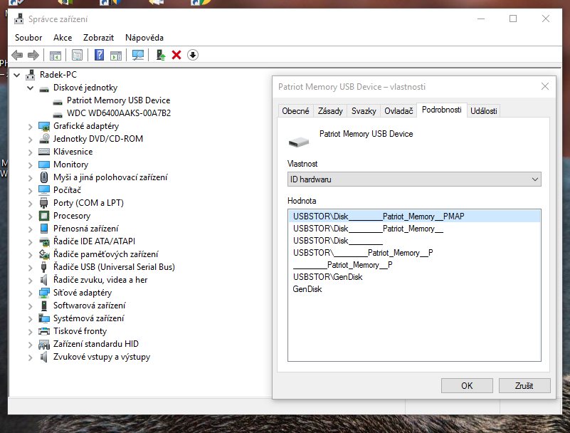 ve správci HW - Podrobnosti -> ID hardwaru.
