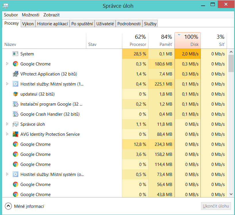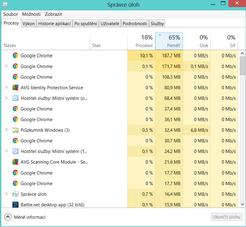 Správce úloh-Procesy-něco neobvyklého,co žere kapacitu CPU nebo RAM?
