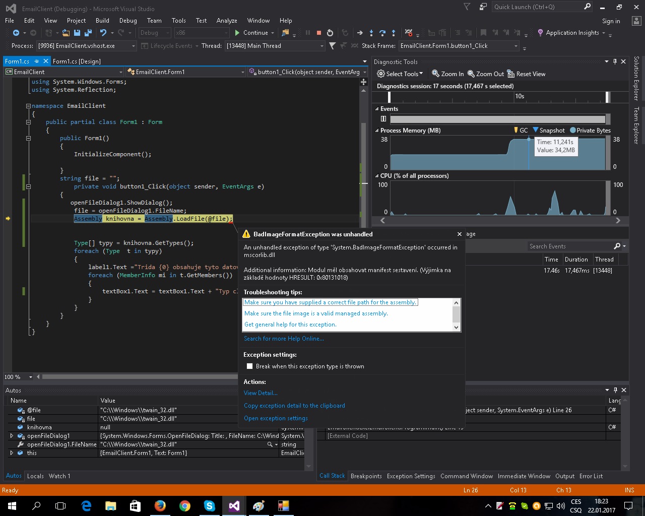 Přidat otázku mezi oblíbenéZasílat nové odpovědi e-mailem C#příklad 1017 Výpis vlastností datových členů tříd dynamické knihovny