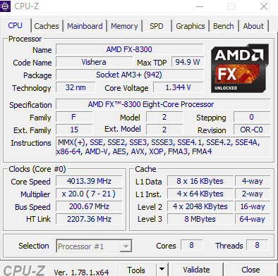 Procesor: AMD FX-8300 VISHERA, AM3+, frekvence jádra 3.3GHz, Turbo Core až 4,2GHz, cache 8MB L2, 8MB L3, eight-core (8 jader), jádro Vishera, TDP 95W, odemčený násobič