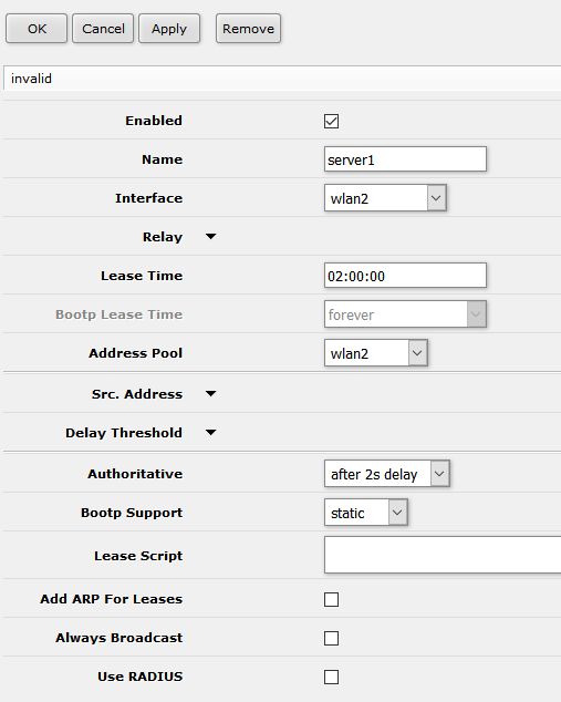 ano, to je právě to, nač jsem mířil. Vytvoř novou bridge pro tuto WLAN2 a DHCP server nastav na ni.… poslední