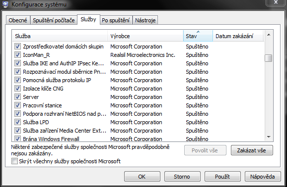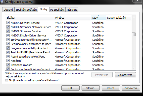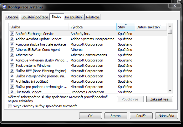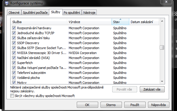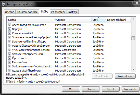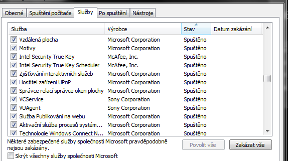 Dagmara: si nejaký podnikateľ, je to pracovný počítač? Lebo ak je to súkromný počítač, tak máš tam nehorázne veľa procesov, ktoré sa spúšťajú a sú zbytočné. Napr. VAIO od Sony (prakticky všetko od Sony), Adobe update, CCleaner, NVidia Stereoscopic, telefónny subsystém, vzdialená plocha, Zoner Photo..., služby bluetooth (ak nepoužívať aktívne - tak je to zbytočné, aby sa to spúšťalo), Media Center, Plánovač úloh, Net.Pipe Listener adaptér, NVIDIA network service, ak nepracuješ v nejakej sieti, len v domácej sieti - zbytočne Naslouchací proces skupiny, IconMan - nejaké "tunitko"-zbytočné, Prehladávanie počítačov... toto sa používa v podnikoch v pracovných skupinách, ale doma je to zbytočné, aby sa to spúšťalo pri štarte.