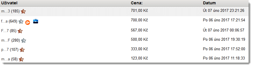 Aukce - Aukro - vyšší přihození se nezobrazilo