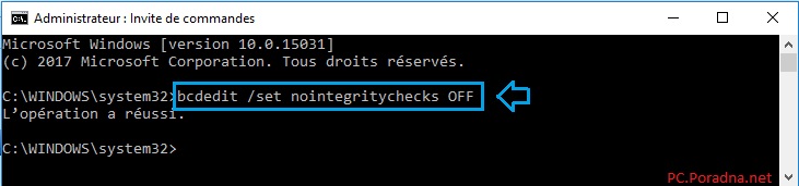 * Po zadani restartuj PC. Pro opetovné zapnutí, stací zadat stejny príkaz, jen 'OFF' nahradís za 'ON'.